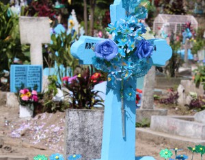 Como muchos salvadoreños que visitaban este lugar, allí se encontraba Doña Rosalina Reyes, proveniente de Soyapango. Ella expresa que cada año viaja desde el municipio vecino para enflorar a su hija Irma Quinteros Reyes, quien falleció hace 21 años, de la cual comenta que tiene muchos recuerdos y es ella misma quien elabora las flores de papel de colores para adornar su aposento.
