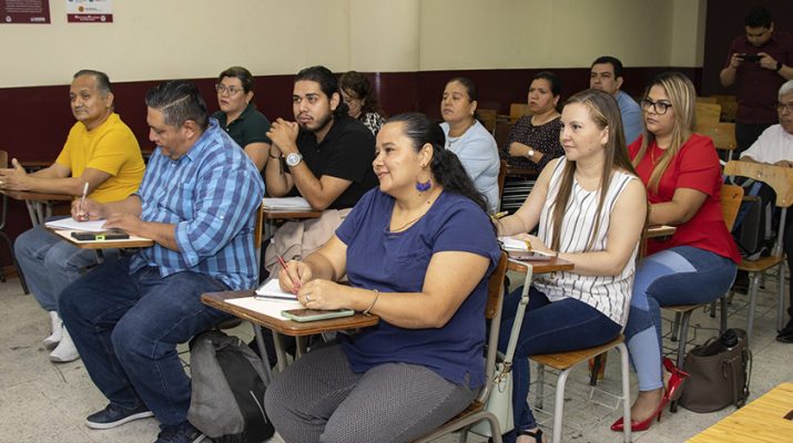 La capacitación se imparte en una de las aulas del campus de la Utec, y los participantes son profesionales de la docencia de diversos