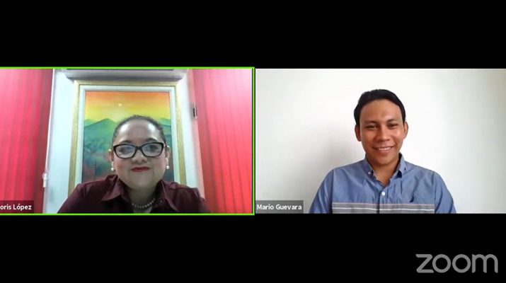 Mario de Jesús Paz Guevara, estudiante de ingeniería en sistemas y computación, fue invitado a participar en la actividad que fue moderada por la vicerrectora de investigación y proyección social de la Utec, Noris López Guevara.