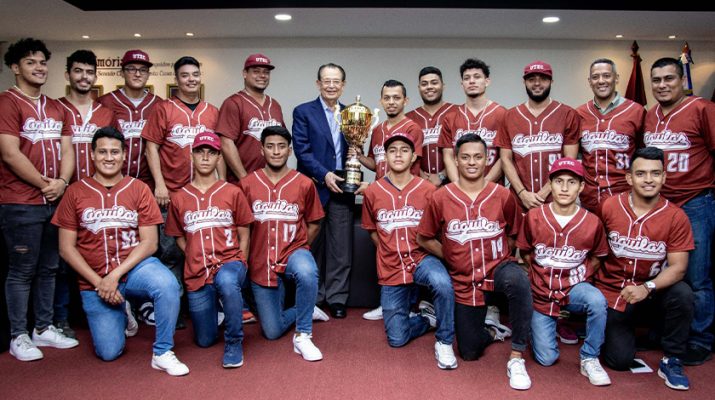 Entregan a rector honorario Utec trofeo de campeón de béisbol obtenido por las Águilas
