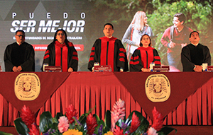 Durante el acto de graduación de la facultad de ciencias sociales, en carreras como comunicaciones, antropología, psicología, e idiomas, la decana Arely Villalta de Parada, dijo a los estudiantes que ese logró alcanzado no debe representar un alto en el desarrollo de su ser.