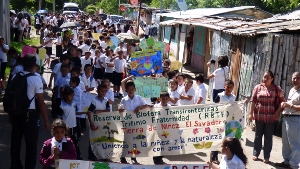 biosfera3Uniendo a las personas y la naturaleza, uniendo a la niñez y la naturaleza con amor, no contaminemos el medio ambiente, reciclemos, no matar a los animales ya que están en peligro de extinción, no tirar la basura al río Lempa y no tirar la basura al suelo, son algunos de los mensajes que se leen en las pancartas y carteles que portan más de un centenar de estudiantes entre niños y niñas y jóvenes adolescentes de los centros escolares que han participado en la marcha, junto con los representantes de las comunidades y organizaciones que les apoyan en la gestión ambiental.