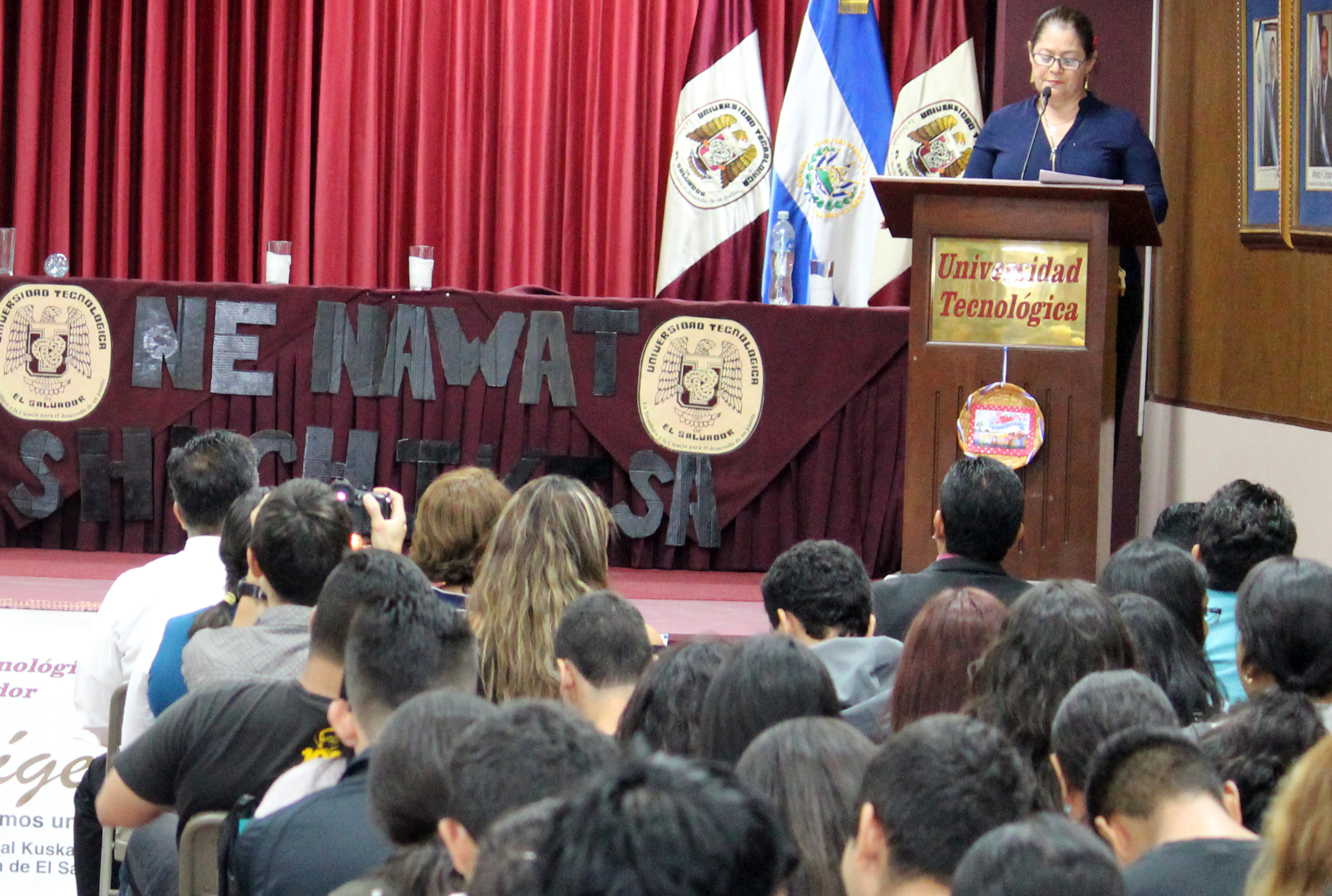Uno de los principales auditorios de la Universidad Tecnológica de El Salvador (Utec) fue el escenario donde se desarrolló la conmemoración del Día internacional de la lengua materna y el Día nacional de la lengua náhuat.