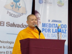 Un monje tailandés llegó al campus de la Universidad Tecnológica de El Salvador (UTEC) para compartir un taller con los principios teóricos de la meditación, el cual es parte de la jornada denominada Meditando por la Paz en El Salvador, que se desarrolló recientemente en el país.