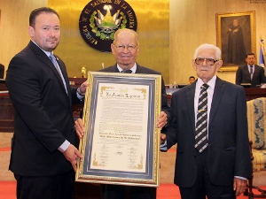 Por comprometerse con la verdad y por su lucha, con total convencimiento y decisión, por el respeto de los derechos humanos y la dignidad de la persona humana, la Asamblea Legislativa otorgó la distinción honorífica de manera póstuma como “Hijo Meritísimo de El Salvador” al nuevo beato de la iglesia católica, Monseñor Oscar Arnulfo Romero y Galdámez.