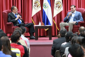Fue mediante un conversatorio que moderó el presidente la casa de estudios universitario, donde el actual diputado expuso su plan de trabajo en caso de llegar a la silla edilicia de San Salvador en las elecciones del próximo año.