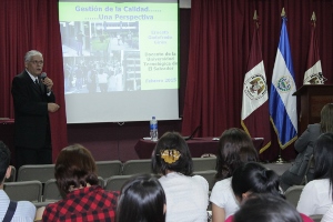 Estudiantes de nuevo ingreso de la Universidad Tecnológica de El Salvador (UTEC) de las carreras de turismo, administración de empresas, psicología entre otras, participaron en la conferencia Gestión de calidad una perspectiva.