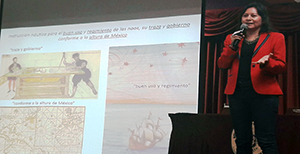 La profesional azteca recalcó la importancia del aporte que García de Palacio dejó para la región, pues fue el principal autor del registro de varias lenguas y costumbres. “Fue el primero en registrar alrededor de 31 lenguas agrupadas en 6 familias, así mismo registró las descripciones de algunas costumbres gentilicias y, por si eso fuera poco, realizó la primera descripción sobre las Ruinas de Copán, en Honduras”, explicó la investigadora.