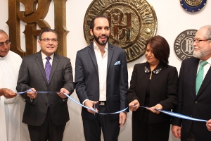 La inauguración oficial fue encabezada por la presidenta del banco, Nora Mercedes Miranda, el rector de la Universidad Tecnológica (UTEC), Nelson Zárate y el alcalde capitalino Nayib Bukele, quienes acompañados de amigos, clientes y funcionarios de la institución, realizaron el primer recorrido guiado por quienes trabajaron en el proyecto.