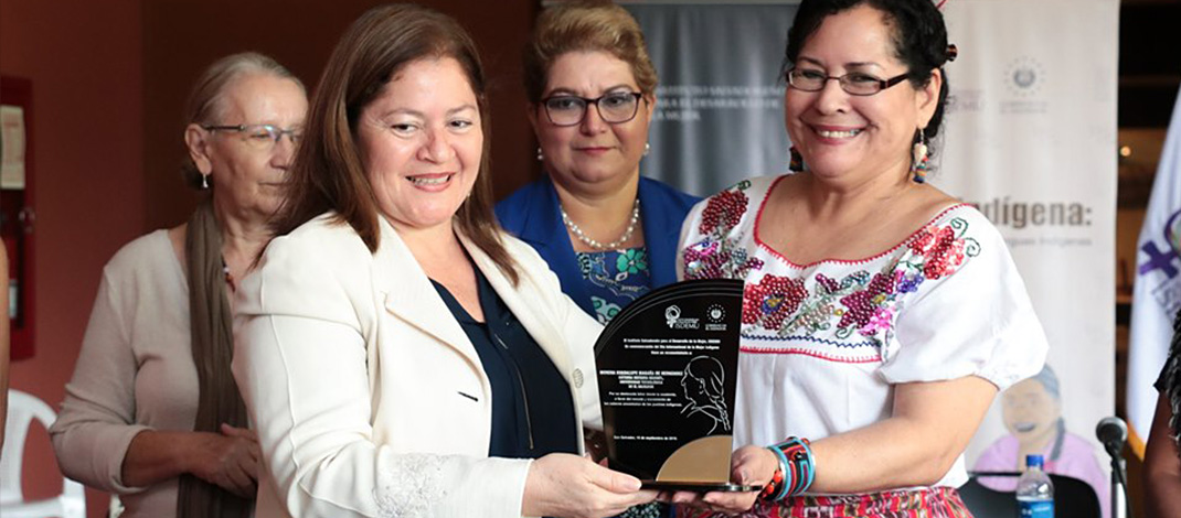 El Instituto Salvadoreño para el Desarrollo de la Mujer (Isdemu) entregó un reconocimiento especial a la coordinadora de la cátedra indígena náhuat de la Universidad Tecnológica de El Salvador (Utec), Morena Guadalupe Magaña, por su destacada labor desde la academia en favor del rescate y transmisión de los saberes ancestrales de los pueblos indígenas.