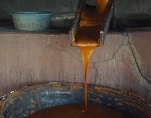 Vicente Valencia explica que el proceso para ver el producto final puede tardar un tiempo aproximado de cinco a seis horas, en el cual el jugo de caña logra su cocimiento y se convierte en miel, pero pasa por diferentes puntos formando diferente tipos de jarabe. “Es decir que entre ellas se puede encontrar la miel de mesa o miel de azúcar, miel de dedo, miel de batido y la miel de panela que luego se forma en el tan sabroso dulce de atado”, explicó al artesano de la molienda.
