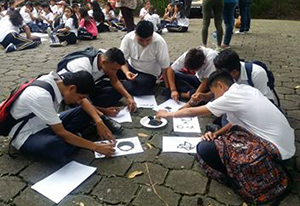 Más de un centenar de niños de dos centros educativos del municipio de Cojutepeque, en el departamento de Cuscatlán, mostraron sus habilidades artísticas en la pintura durante un colorido festival que se desarrolló en la cima del emblemático cerro de Las Pavas.