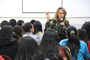 La experimentada comunicadora compartió con los jóvenes de las asignaturas de reportaje investigativo, inglés para comunicaciones y sociología de la comunicación, un trabajo de investigación periodístico sobre el militar y diplomático salvadoreño José Arturo Castellanos, reconocido a escala internacional por salvar la vida de unos 40 mil judíos durante el holocausto en la segunda guerra mundial, que marcó la persecución y aniquilación sistemática de los judíos europeos por parte de la Alemania nazi y sus colaboradores, entre 1933 y 1945.