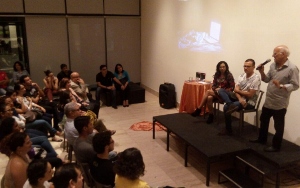 En el evento también estuvieron presentes el director del Teatro Luis Poma, Roberto Salomón; los editores Susana Reyes y Carlos Clará, quienes apoyaron con sus comentarios al poeta.