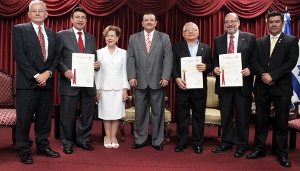 Los propietarios de Farmacias San Nicolás, Pan Sinaí y Grupo Consisa, recibieron el galardón que por primera vez entrega la casa de estudios universitarios.