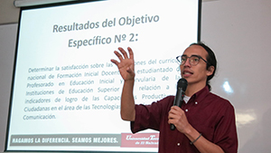 Desarrollo de capacidades productivas y ciudadanas en la formación inicial de los docentes, es el nombre de la investigación que presentó el profesional de la Universidad Tecnológica de El Salvador (Utec), Ronny Adalberto Cortez Reyes, ante un grupo de directores, sub directores y coordinadores de educación media.
