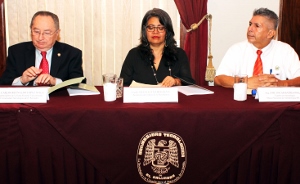 El contenido fue presentado por el experto en museología del Museo Nacional de Antropología (MUNA), José Oscar Batres Posada, quien se hizo acompañar en la mesa de honor del vicepresidente de la junta general universitaria, Carlos Reynaldo López Nuila y la secretaria de cultura, Silvia Elena Regalado.