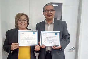 El director de la escuela de psicología, René Edgardo Chacón, y la coordinadora de proyectos de proyección social, Mariel Sánchez de Pineda, participaron del Taller de capacitación para pares evaluadores, impartido por el Ministerio de Educación, Ciencia y Tecnología, en coordinación con otras instituciones.