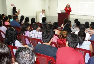 Ana Rosa Bonilla, del CDMYPE de la Utec, fue la responsable de contextualizar a los estudiantes del área de psicología.