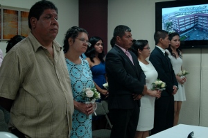 El programa de bodas colectivas impulsado por la escuela de derecho se lleva a cabo cada ciclo, con el fin de contribuir a la integración familiar de muchas parejas que se les dificulta cumplir su anhelado sueño.
