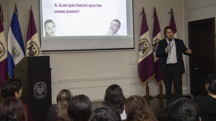 El cofundador de Impact Hub San Salvador, José Rodríguez, fue el responsable de compartir la temática con estudiantes, misma que se dio en el