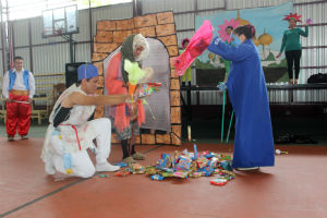 Dicha celebración se realizó en el Polideportivo de la Utec, donde además de los payasos, dulces, piñatas y regalos, un grupo de jóvenes actores de teatro dramatizaron el cuento infantil de Disney: Aladino y la lámpara maravillosa.