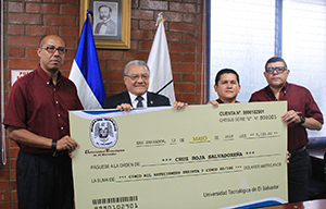 Representantes del decanato de estudiantes de la Universidad Tecnológica de El Salvador (Utec) hicieron efectiva la entrega del donativo de 5 mil 735 dólares, a representantes de Cruz Roja Salvadoreña (CRS).